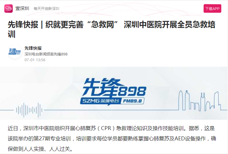 先锋快报 | 织就更完善“急救网” 深圳中医院开展全员急救培训