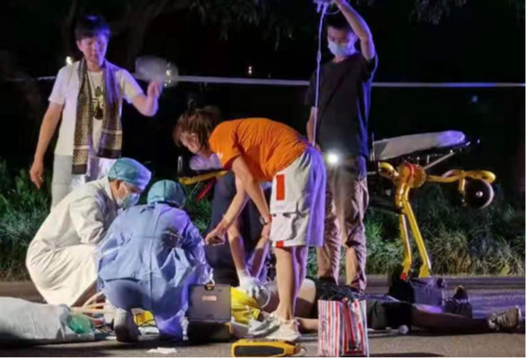 2021年6月20日晚7时30分许,一男子在香蜜公园突然倒地,人事不省。正在公园锻炼的深圳市中医院干部保健科科长易无庸与热心市民、随后赶到的120急救人员接力,将男子救活。此次高效的心肺复苏救治,被不少媒体赞誉为“教科书式急救”。
