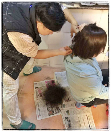妹妹已经确定作为重症医学科护理骨干加入广东省第三批医疗队,即将奔赴武汉了。这几天,她依然坚持奋战在医院一线,等待卫健委的一声令下。为了穿脱防护服方便,妹妹说要把长头发剪了。但是外面的理发店都没开门,我们兄妹俩只好化身Tony老师,自己动手了,剪去了对征途的不安与恐惧,留下了一往无前的勇气和决心。