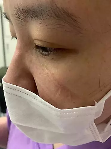 一天工作下来戎晓函面部被压出多道红痕