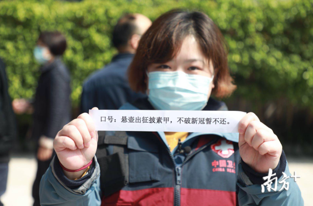 医疗队的口号:悬壶出征披素甲,同心协力破新冠。