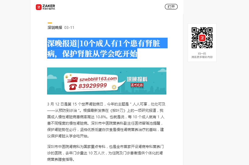 深圳市中医院肾病科为国家重点专科,也是全市首家开设肾病专科营养门诊的医院,去年门诊量达 10 万人次,为住院及门诊患者提供个体化的肾病营养膳食指导。