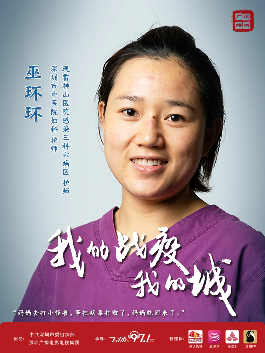 巫环环,深圳市中医院妇科护师。疫情发生后,她第一时间报名参加深圳援派湖北医疗队,派驻武汉雷神山医院感染三科六病区参与新冠肺炎患者的救治工作。在雷神山前线她用精湛的护理技术、细致的护理服务、耐心的开导疏解,得到了病患的一致认同和同事的交口称赞。