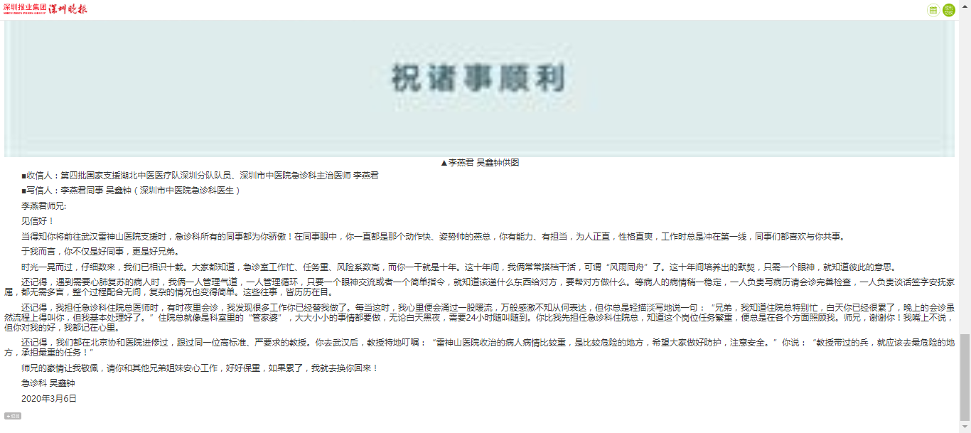 ■写信人:李燕君同事 吴鑫钟(深圳市中医院急诊科医生)