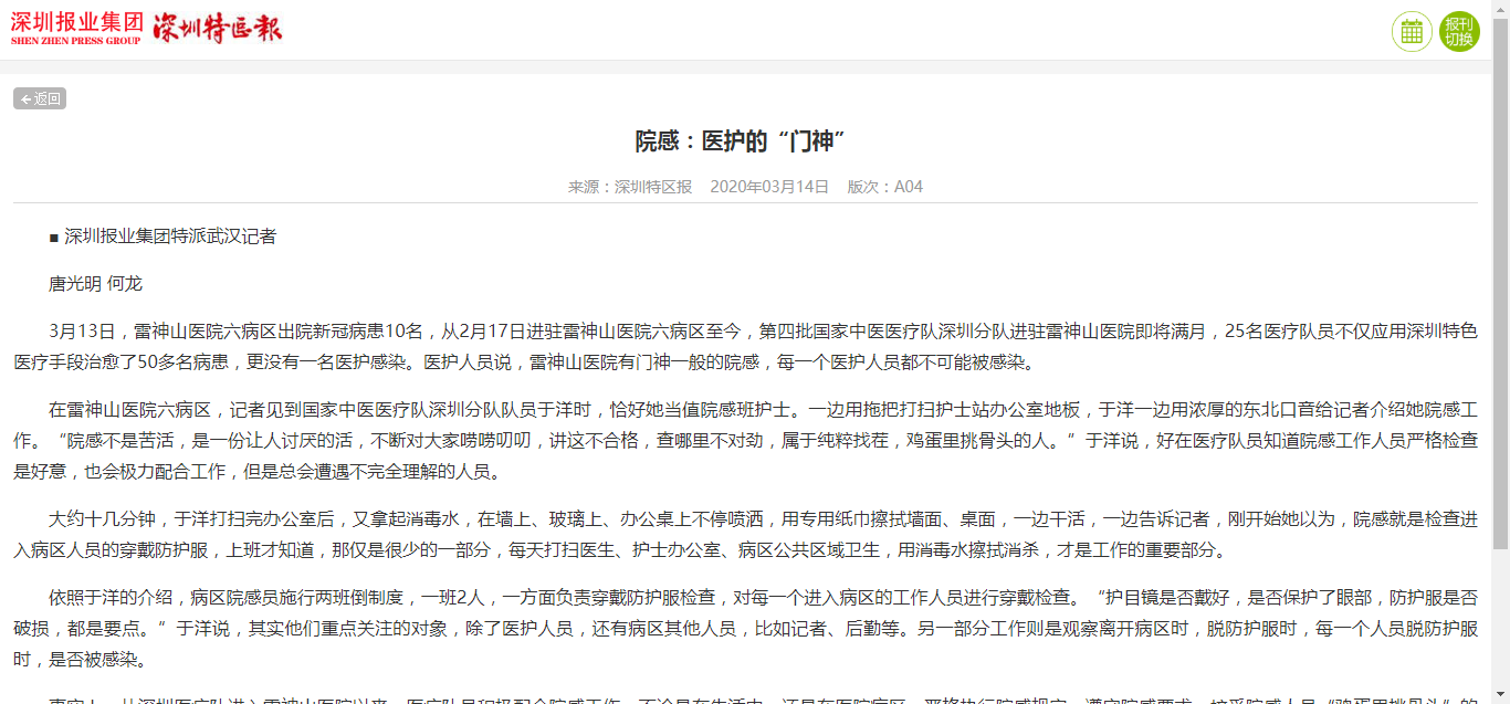 【深圳特区报】院感:医护的“门神”