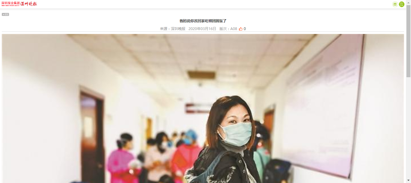 今天我工作结束后回家吃饭,爸妈又提起了你。他们说,这个疫情什么时候能结束呀,你该回家吃顿团圆饭了。我笑笑说,妹妹是医护人员,她肯定要坚持到最后一刻。