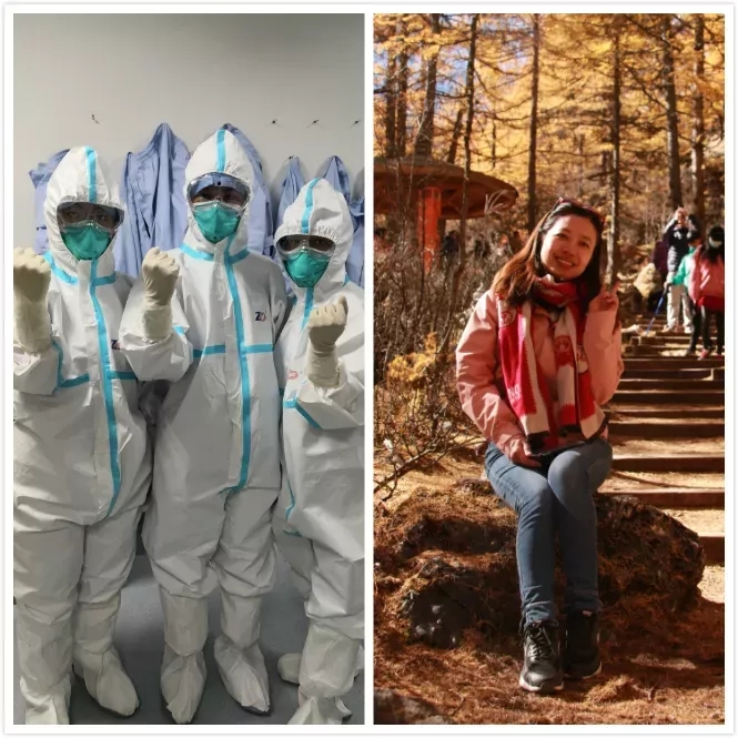 张琼玲(左图右一)一线防疫和日常生活(右图)模样