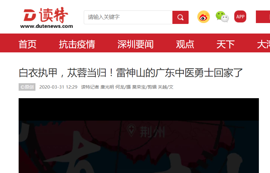 3月31日,由广东省中医院和深圳市中医系统联合组建的国家援助湖北第四支中医医疗队,撤离武汉。这支队伍共有72人,接管雷神山医院感染三科六病区已达42天,接管床位48张,累计收治新冠肺炎患者99人。截至3月30日,该医疗队治愈出院95人,其余4人转至其他病房继续接受治疗。今天,他们踏上了回家的旅程!