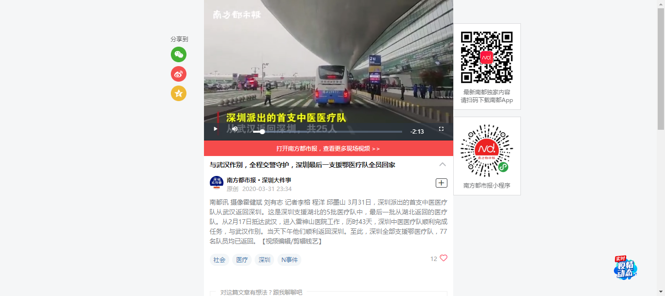 【南方都市报】与武汉作别,全程交警守护,深圳最后一支援鄂医疗队全员回家