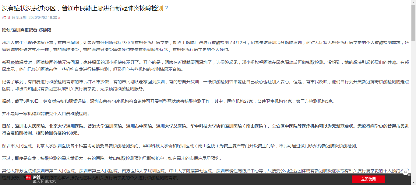 【读创深圳】没有症状没去过疫区,普通市民能上哪进行新冠肺炎核酸检测?