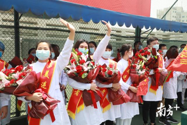 欢送仪式结束后,队员们将陆续返回各自的医院。40多个日日夜夜奋战在救治一线,大家结下了深厚的情感。离开深圳市人才研修院之前,于洋特意来到深圳市中医院的大巴车,一一与“战友”们道别。“到时候大家都来参加婚礼,等着我给你们发喜糖。”于洋的语气里有不舍,也有幸福,而不远处的李振南一直注视着她。