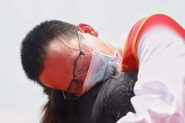 仪式结束,分别的那一刻,曾经在雷神山并肩作战的队员们再次相拥。一个深深的拥抱,胜过千言万语。