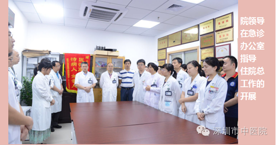 2017年5月8日,经医院院长办公会议议定,陈钟、欧莉君、徐慕娟、杨龙、秦秀德等5位医师被评为优秀住院总医师,将由医务科按照《深圳市中医院住院总医师考核管理办法》执行奖惩,同时将梳理汇总第一届住院总医师工作总结成册,提取、凝练好的做法、经验,在后续的住院总医师工作中进行广泛推广运用,以期进一步提升住院总医师的业务技术水平和行政管理能力等。