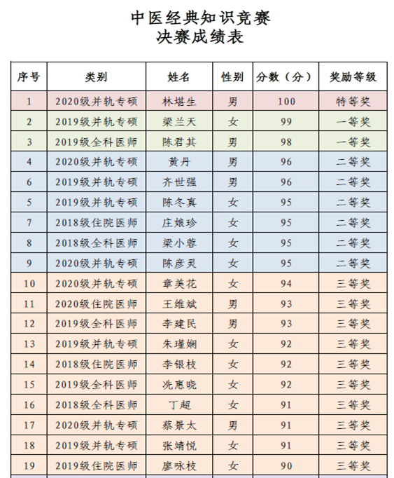 本次竞赛评选出特等奖1名、一等奖2名、二等奖6名、三等奖10名、优胜奖16名。学员们反映这次活动在我院掀起了伤寒学习热潮,很受大家欢迎。