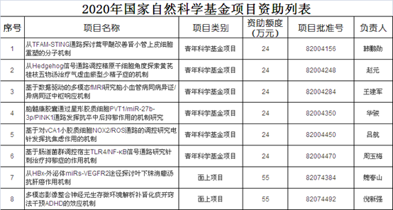 积极组织申报各级各类科研项目,2020年获批国家自然科学基金项目8项,资助金额254万元。项目清单如下: