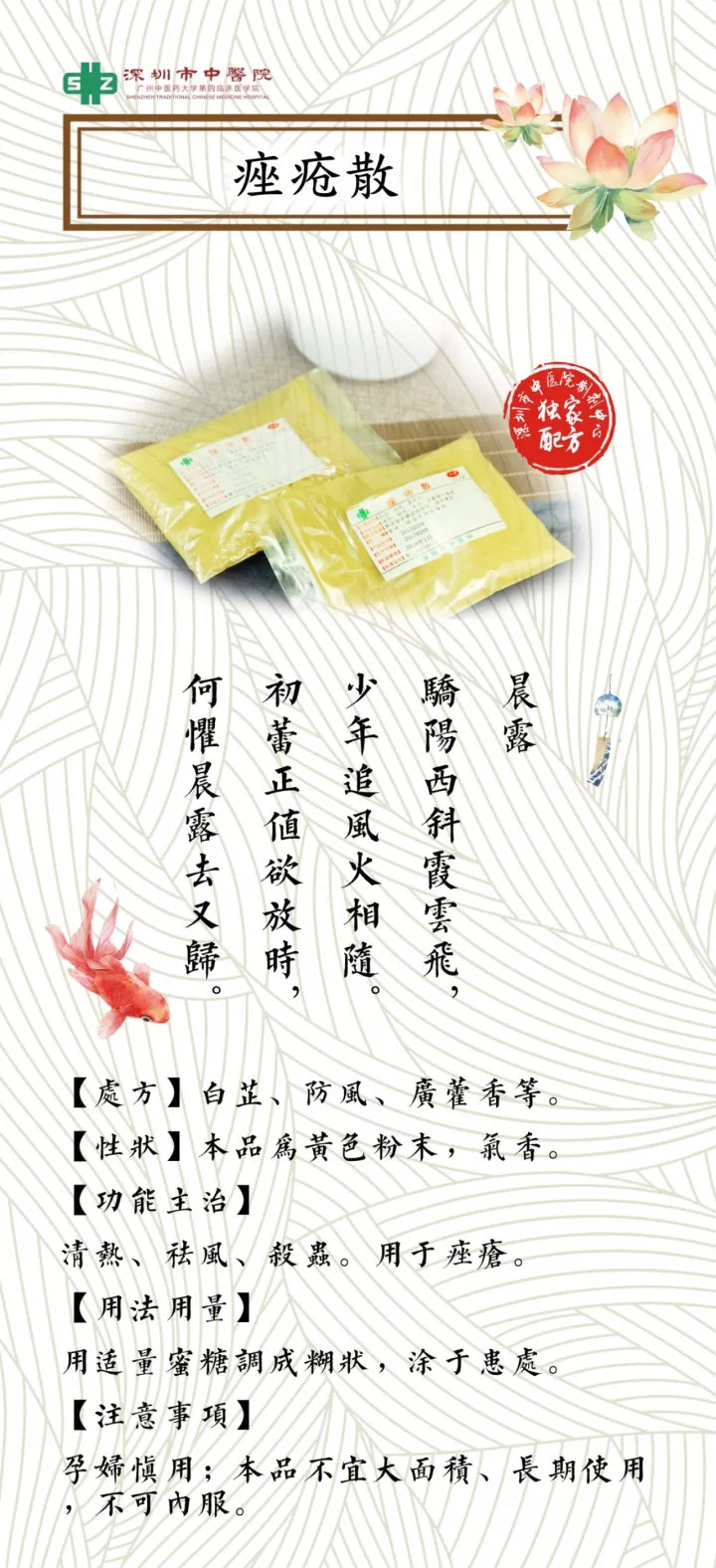 深圳市中医院的院内中药制剂在临床应用已经20多年,得到病人的广泛好评,是我院专家宝贵临床经验的结晶。