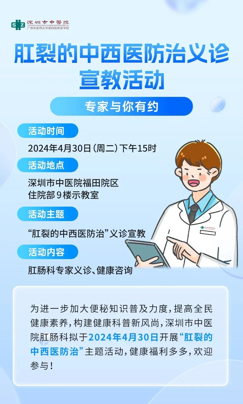 【活动预告】4月30日肛裂的中西医防治义诊宣教活动,专家与你有约
