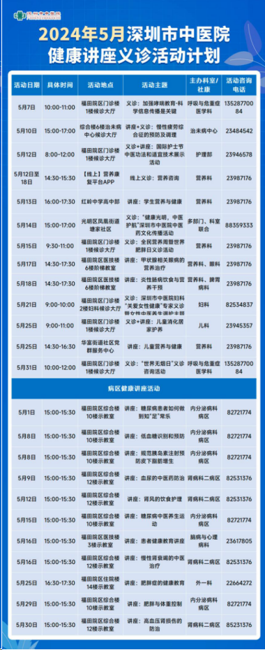 为进一步加大健康知识普及力度,提高全民健康素养,构建健康科普新风尚,助力全面推进健康中国建设,深圳市中医院发扬中医药特色优势,每月均开展系列健康教育活动。