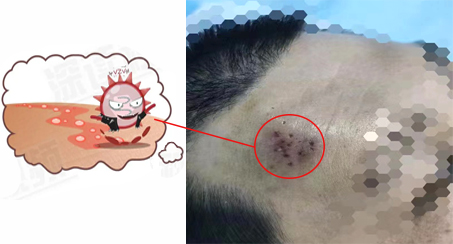 再一次仔细检查了患者的头部,终于发现一片红色簇集的疱疹沿着神经走向的位置分布着,再结合患者的症状和体征,头痛的元凶找到了,就是它——带状疱疹。