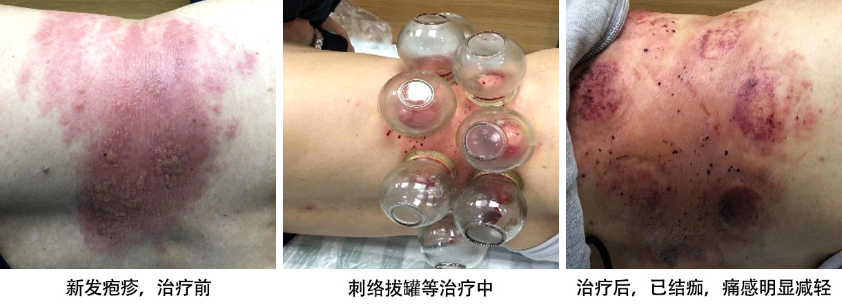 这可真是风吹云散、豁然开朗,病因明确就好对症下药,经过带状疱疹常规抗病毒、止痛、营养神经治疗,再结合针灸、中药、放血疗法、火针等中医特色治疗一周后,患者不再头痛,开心出院了。