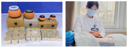火龙罐综合灸,集推拿、刮痧、艾灸于一体,结合揉、碾、推、按、点、摇、闪、震、烫、熨十种手法,以独特设计的齿口来走罐,兼以艾灸的近红外光辐射的电磁波和光电作用,完全摒除了传统火罐造成血淤栓塞的负作用,负压走罐的疼痛感,在运罐过程中大小鱼际在施治部位的进行推拿按摩,以达到调理脏腑、疏通经络、行气活血、滑利关节、温补阳气的目的。