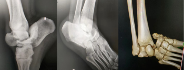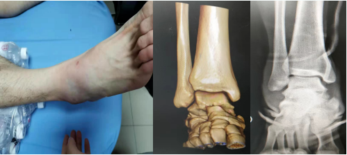 送到我院后,急诊医生立刻安排检查,X线片和CT检查提示:距骨周围脱位!