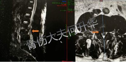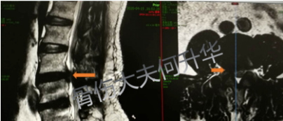 入院后检查腰椎MRI提示:原手术节段腰4/5未见异常,腰3/4椎间盘向右后突出,压迫右侧神经根。
