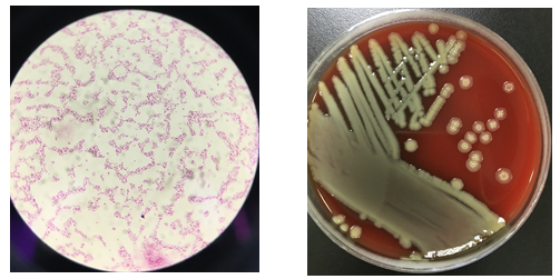 图1创伤弧菌显微镜下形态(左图)及菌落特征(右图)