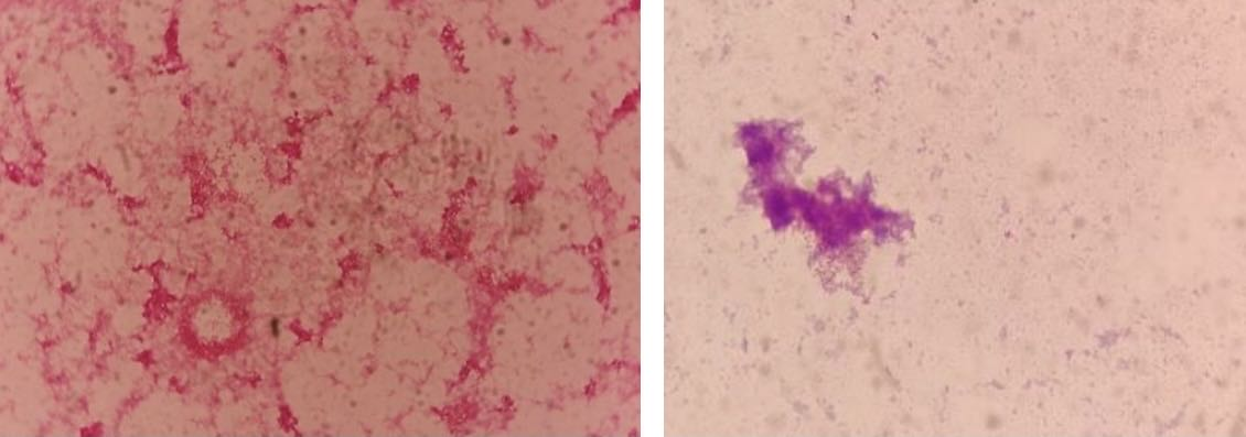 图2马耳他布鲁菌显微镜下细小如沙,不易识别(左图为革兰染色,右图为柯氏染色)