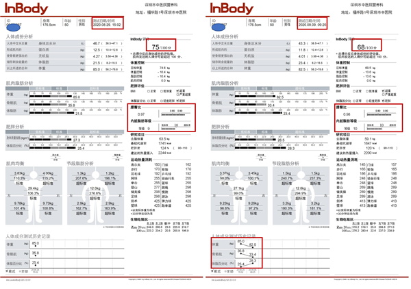 报告解读:9月9日此患者高兴地告知深圳市中医院营养科的医生他已经减了5斤,但复查人体成分结果却发现:他肌肉减了1.4kg,体脂肪反而涨了1.9kg!