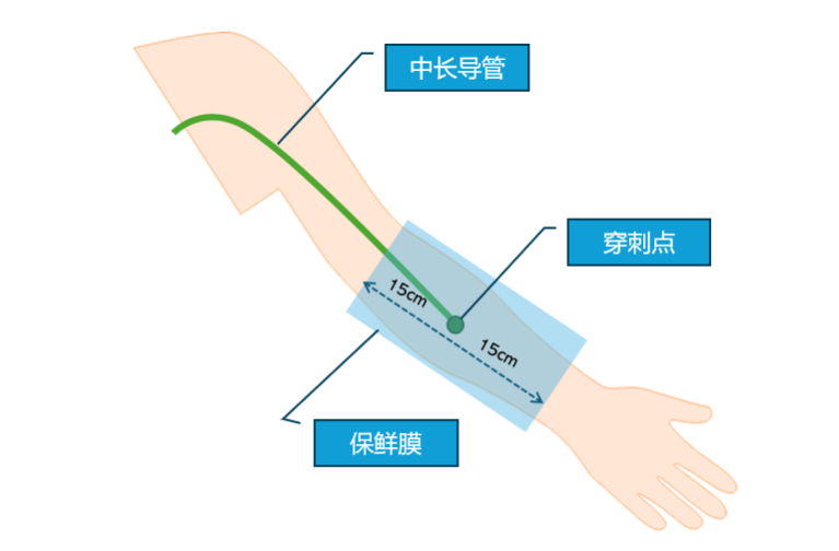 中等长度导管又称中线导管,导管长度为7.5至30cm不等,经外周静脉置入,导管末端位于贵要静脉、头静脉或臂丛静脉,尖端位于腋窝水平或肩下部。是属于外周静脉导管的一种,可作为静脉治疗长期的替代装置,能保证一定的输液速度且静脉炎发生率低于外周静脉导管。优点是不需要X线确认,能减轻反复穿刺给患者造成的痛苦。本期跟您聊一聊,中长导管留置期间需要知道以下几点: