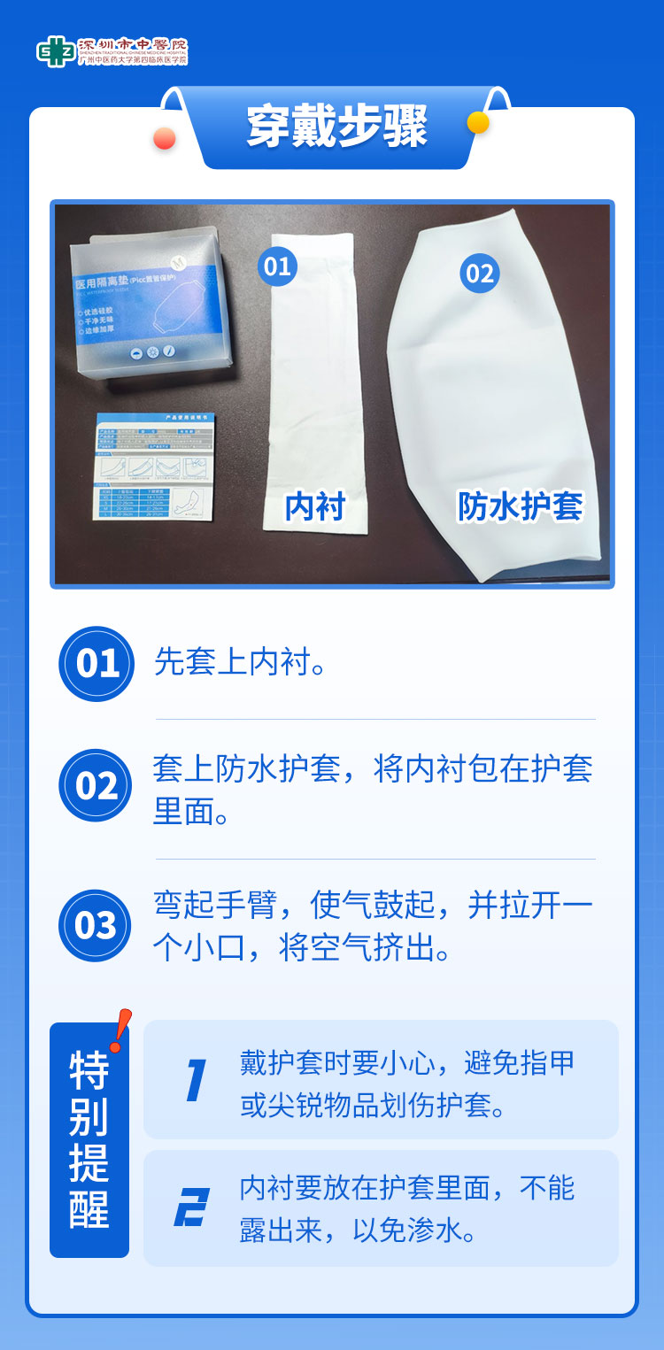 5.淋浴后检查贴膜内是否进水,若有进水及时请护士更换。