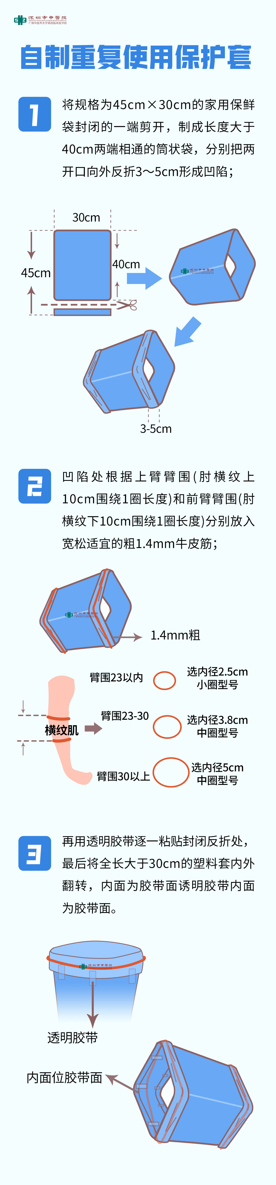 除使用保鲜膜外,也可使用“防水护套”或自制“重复使用保护套”。