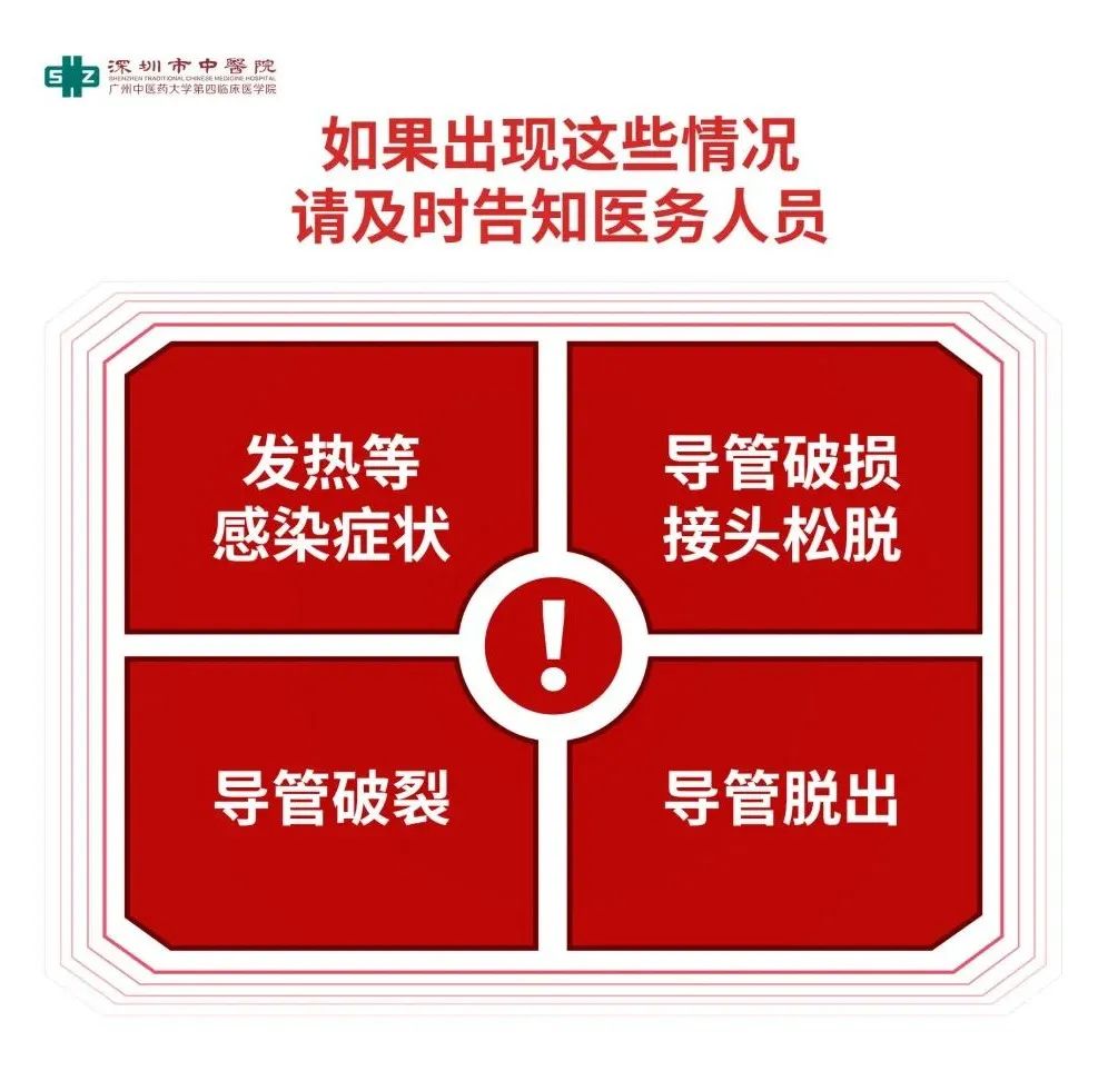 2.不要自行撕下导管外固定的透明贴膜,不要牵拉导管以防导管脱出或断裂滑入体内。