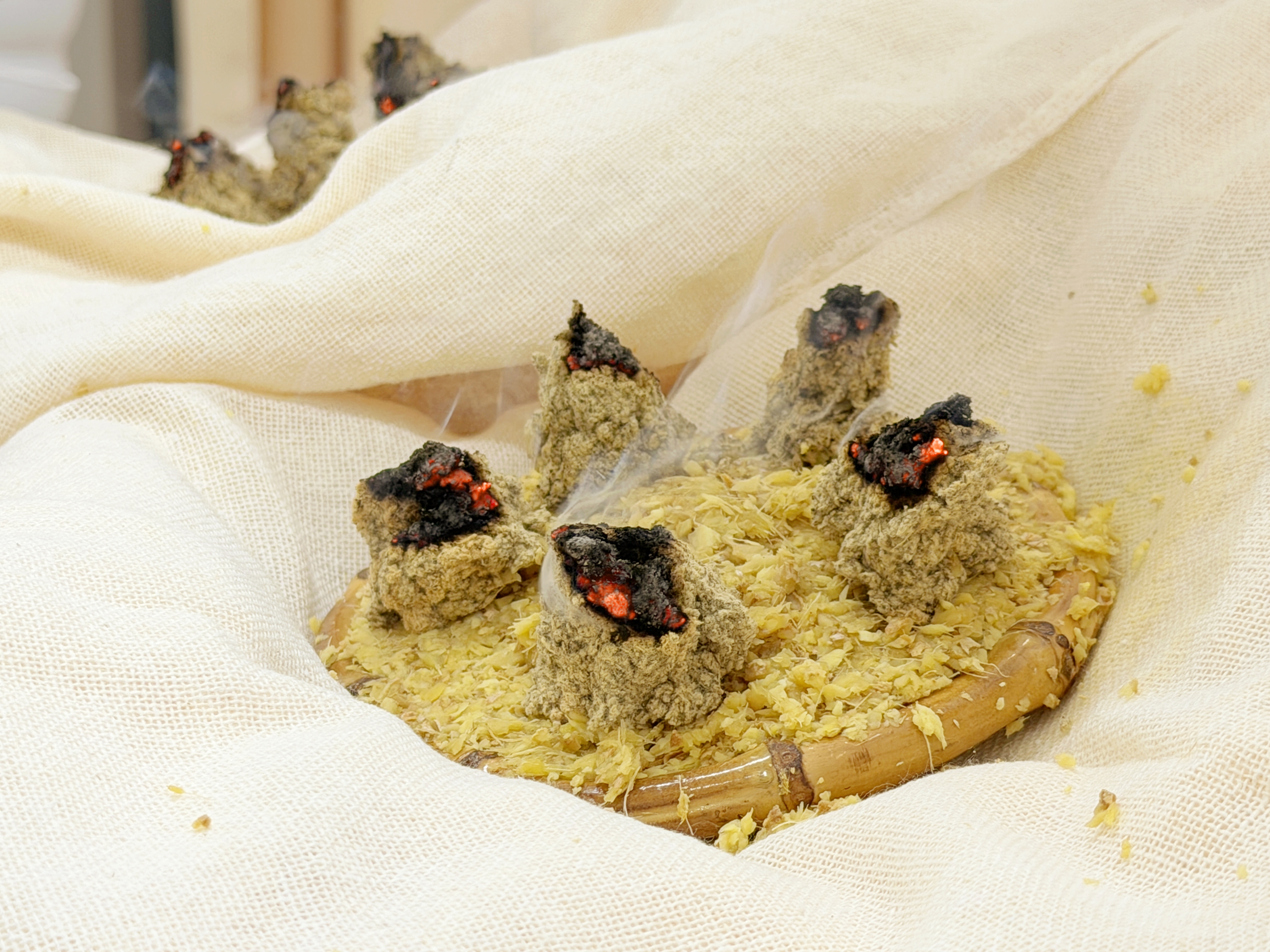 操作时,将细腻姜泥铺于相应穴位位置,再置以圆锥形艾塔,点燃施灸,让药性与热力共同作用于经络腧穴,直达病所。