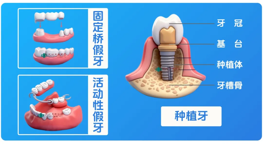 固定牙修复需要磨损邻牙,活动牙长期使用可能压迫牙床出现牙槽骨吸收或压迫牙龈、系带出现疼痛不适。