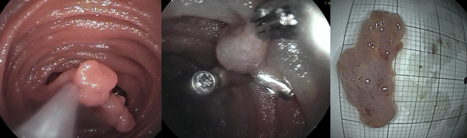 巨大息肉(近10cm)在小肠镜下分块切除。内镜术后平稳后出院