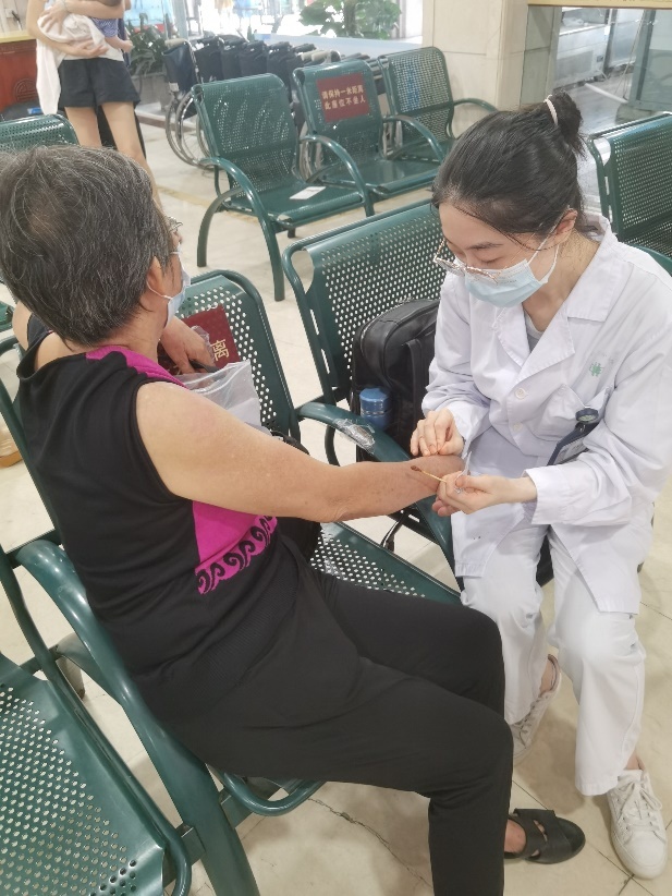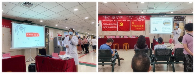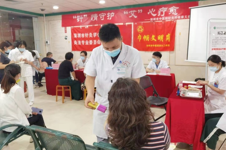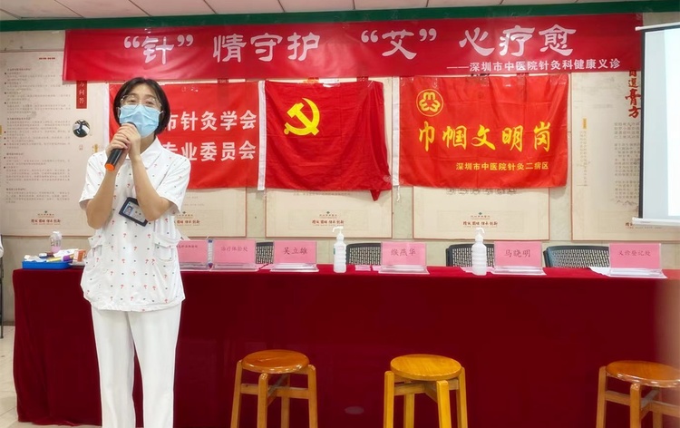 为了让更多市民走近和了解针灸,推广针灸特色疗法,6月30日上午9:30,深圳市中医院针灸科二病区在医院门诊大厅开展了一场以“针情守护、艾心疗愈”为主题的专题讲座及义诊活动。