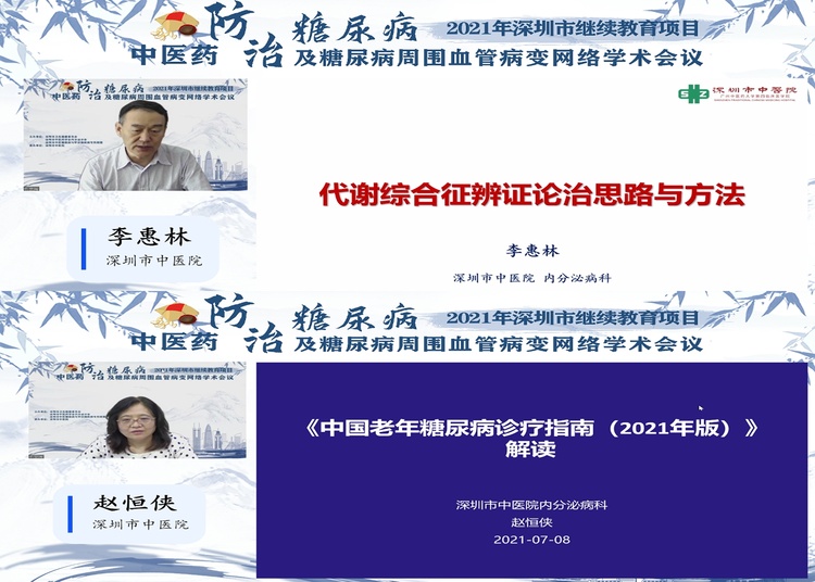 本次学术会议得到了深圳市内分泌学界的各位专家的支持,广州中医药大学深圳医院朴春丽教授、深圳市宝安区中医院(集团)曾纪斌教授、北京中医药大学深圳医院马宇鹏教授、深圳市宝安区中医院(集团)叶仁群教授、罗湖区人民医院李红晖教授、罗湖区中医院郑粤文教授、深圳市萨米国际医疗中心于萍教授等主持了此次会议,使这次网络会议蓬荜生辉。