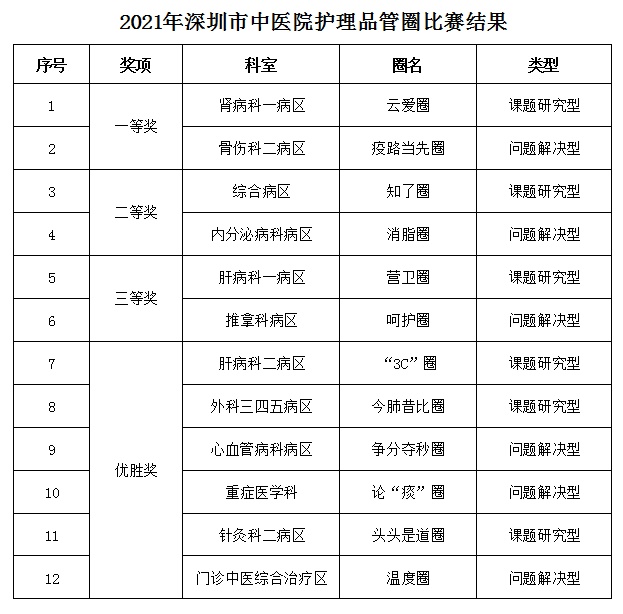 “2021年深圳市中医院护理品管圈比赛”本着“强化质量管理、分享成功经验”的核心理念,以促进多维质量管理工具的科学运用,形成医院护理质量管理的长效机制为目的。