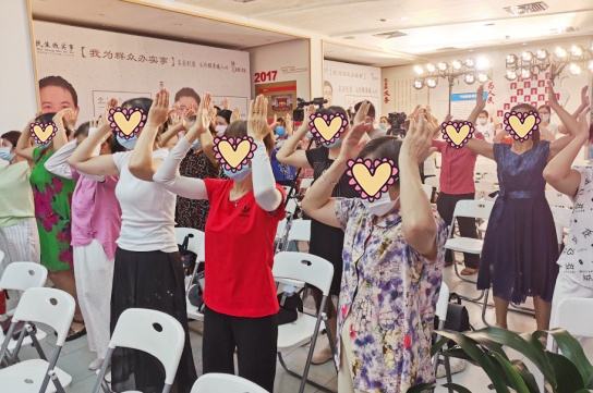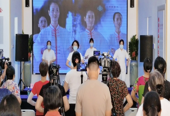 活动现场,深圳市中医院外一科的韩梅护士长和护士们带领现场所有参加义诊活动的市民朋友们进行了经络穴位拍打养生操热身。