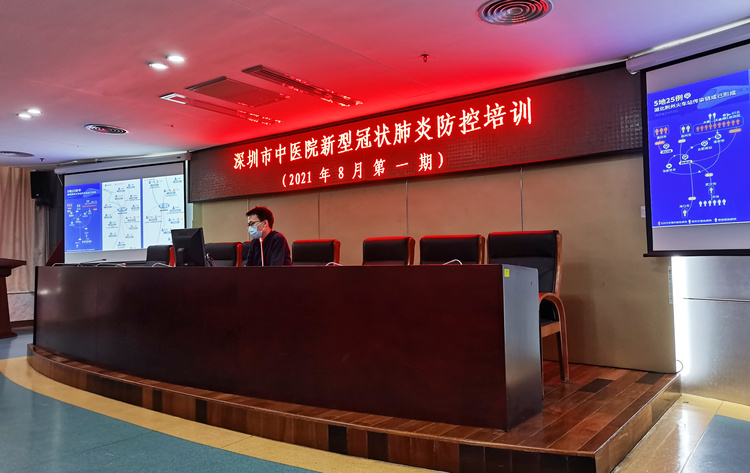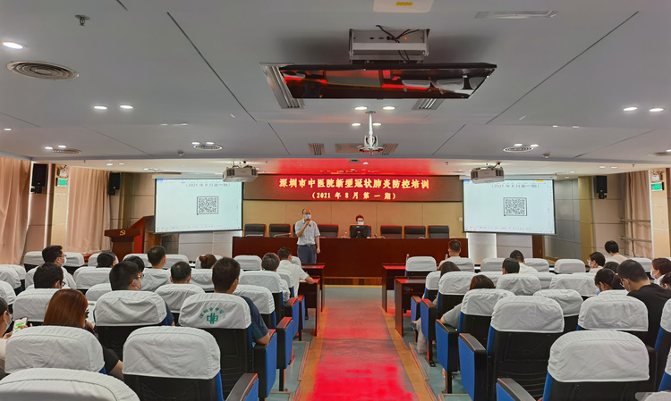 为贯彻落实《广东省新冠肺炎防控指挥办医疗救治组关于进一步做好医疗机构疫情防控工作的通知》文件精神,持续做好新冠肺炎疫情防控工作,根据医院工作安排,拟于2021年8月开展新型冠状病毒肺炎防控系列培训,此次培训将按岗位类型分三期进行,以确保对深圳市中医院所有岗位工作人员培训到位,加强人员管理,持续做好院感防控工作。2021年8月4日下午4点20分,医务科组织开展了主要面向临床、医技科室住院总医师、感控医师和感控护士等人员的第一期新型冠状病毒肺炎防控培训。