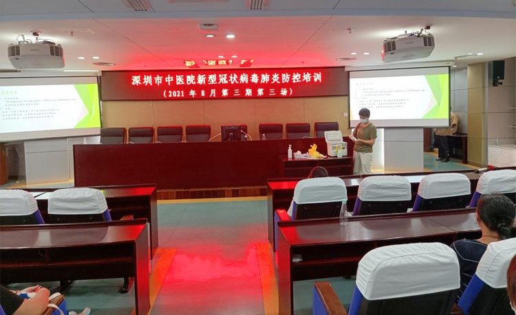 此期培训第三场次与第四场次邀请了深圳市中医院支援雷神山医院中医医疗队副队长、内分泌病科彭思萍护士长为大家讲授《新冠疫情个人防护培训》。在培训学员演示“手卫生”和穿戴个人防护物品操作过程中,彭护长针对纰漏环节予以纠正,着重强调了细节与注意事项。第三场培训特别邀请了深圳市中医院预防保健科吴春泳医生针对深圳市中医院转运人员讲授了关于核酸标本运送相关要求与注意事项,将标本运送工作标准化、规范化,以保证标本检测质量,提高深圳市中医院核酸检测效率。