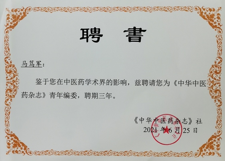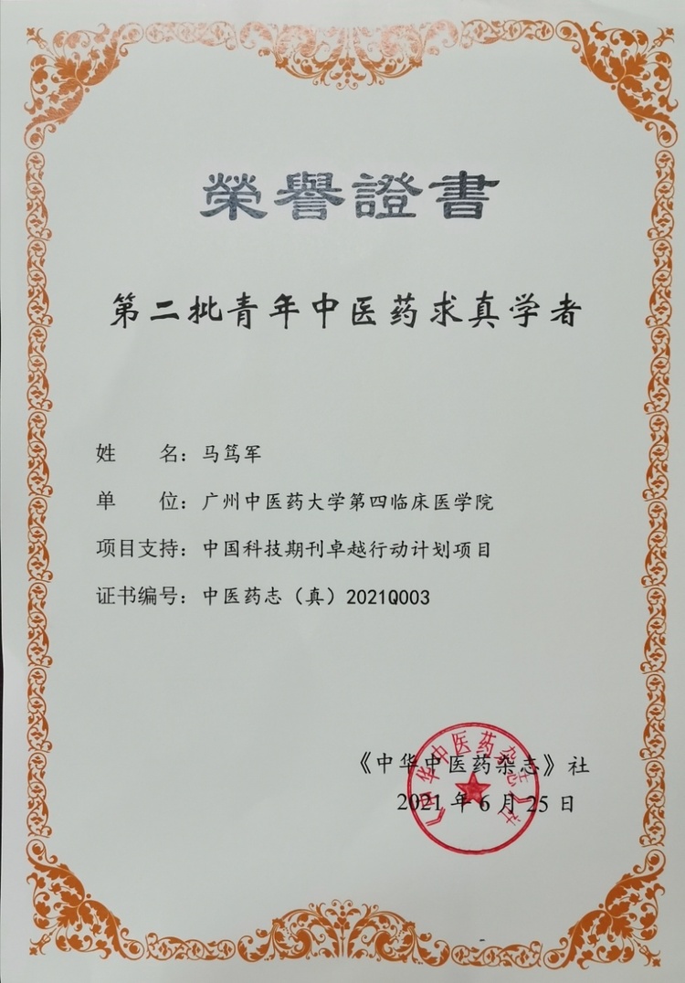 近日,由《中华中医药杂志》社开展的“第二批青年中医药求真学者”评选结果公布,深圳市中医院骨伤科马笃军荣获“第二批青年中医药求真学者”称号,并被聘为《中华中医药杂志》青年编委。