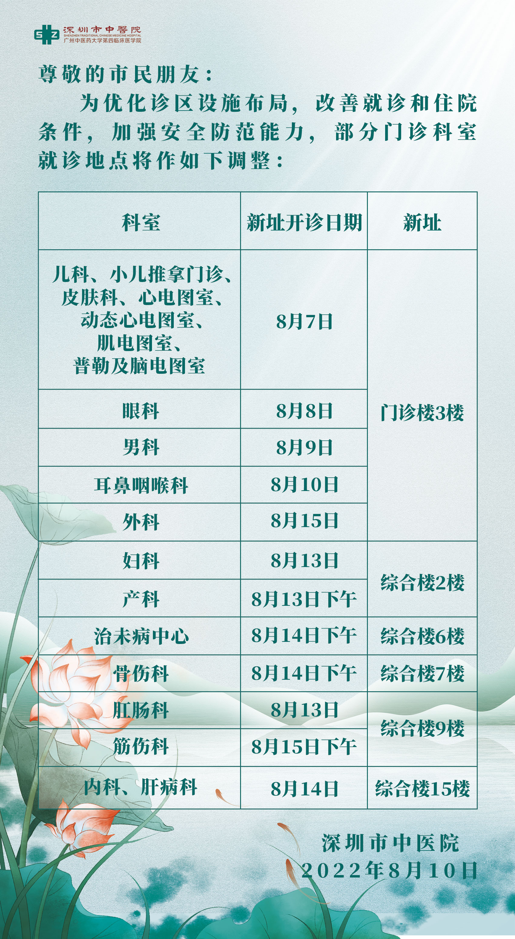 【重要通知】关于调整深圳市中医院部分门诊科室就诊地点的温馨提醒
