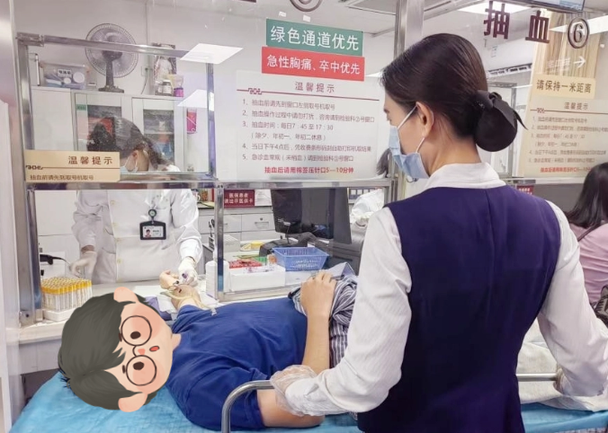 一位自称“晕针晕血”的患者求助导医,导医轻声安抚,推来平车,协助患者躺下完成抽血。一次原本令人恐惧的抽血,变成了平稳而温暖的体验。