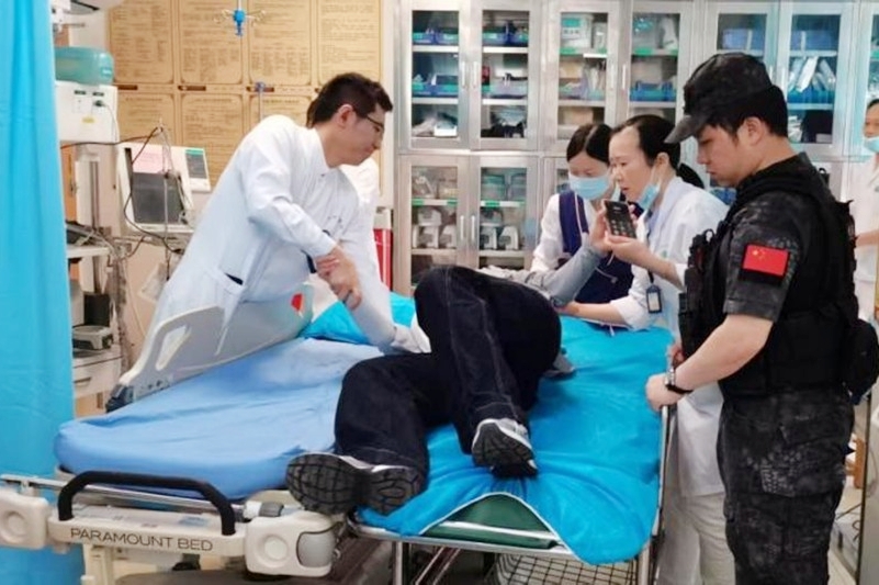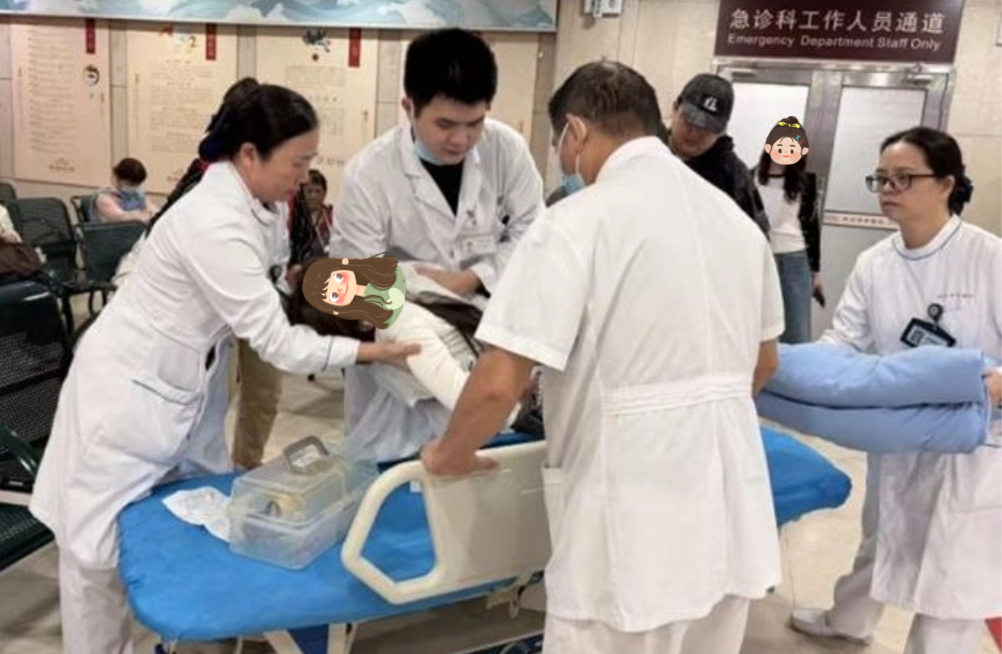 一位患者候药时突发晕厥,志愿者立刻上前扶住,门诊巡查护士饶伟辉和张丽燕疾步上前,查看生命体征,众人合力用平车送往抢救室。一场分秒必争的生命接力,在门诊大厅瞬间完成。