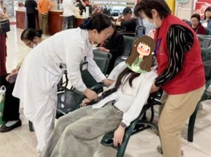 一位患者在抽血时突感头昏,乏力,瞬间无法坐稳。抽血室护士眼疾手快,一把扶住!就近的导医闻讯赶来,默契协作,将患者稳妥移至候诊椅躺下。测血压、补充能量、联系医生……一系列操作快而不乱,护佑患者的安全。