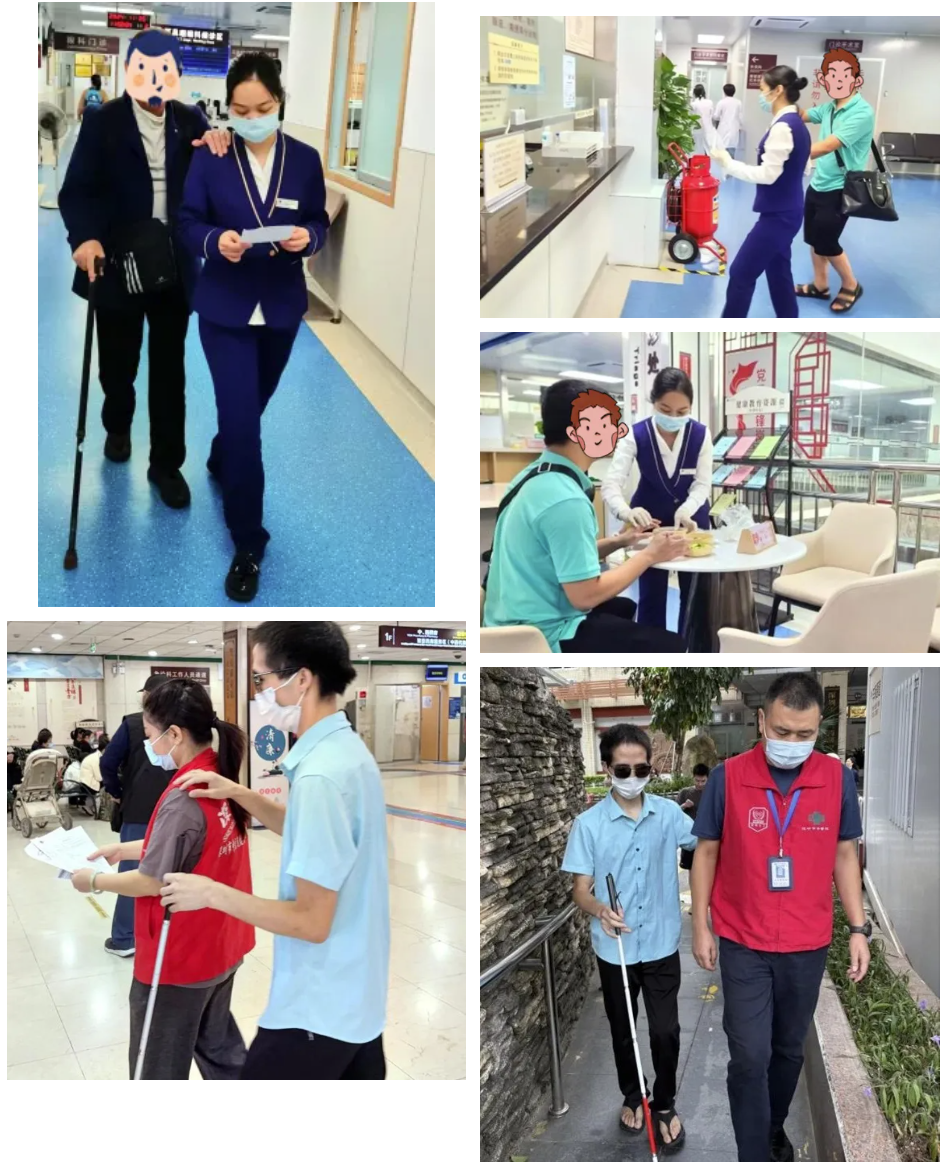 导医和志愿者用自己的手臂为视觉障碍患者架起一座信任的桥梁,做起了全程的引路人,耐心的陪伴贯穿着就医的每一个环节。当所有医疗流程完成后,服务仍未结束——一句自然的“送您到地铁站吧”,让温暖的守护,一路延续。