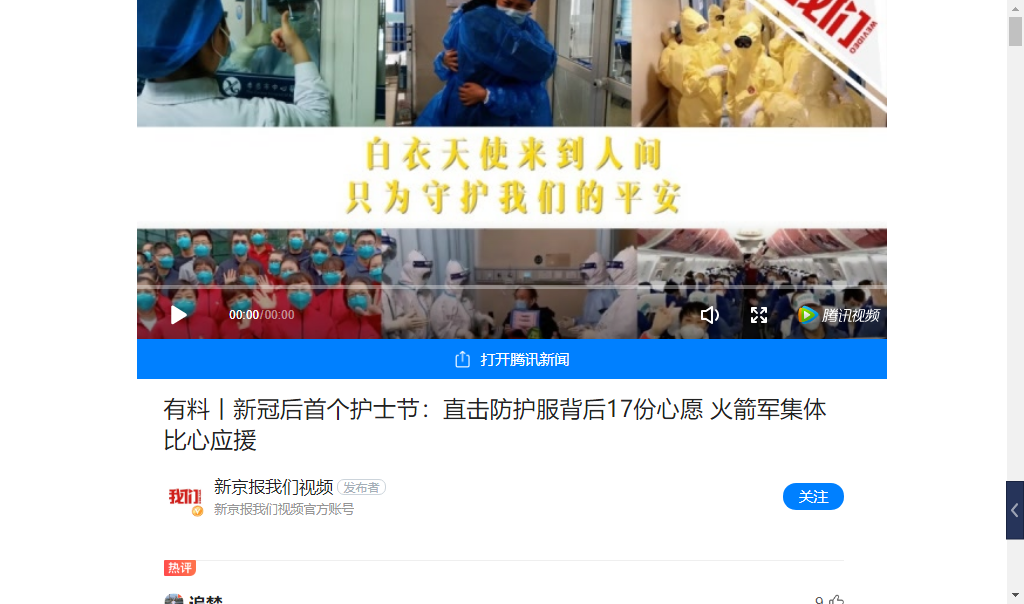 【腾讯视频】有料丨新冠后首个护士节:直击防护服背后17份心愿 火箭军集体比心应援